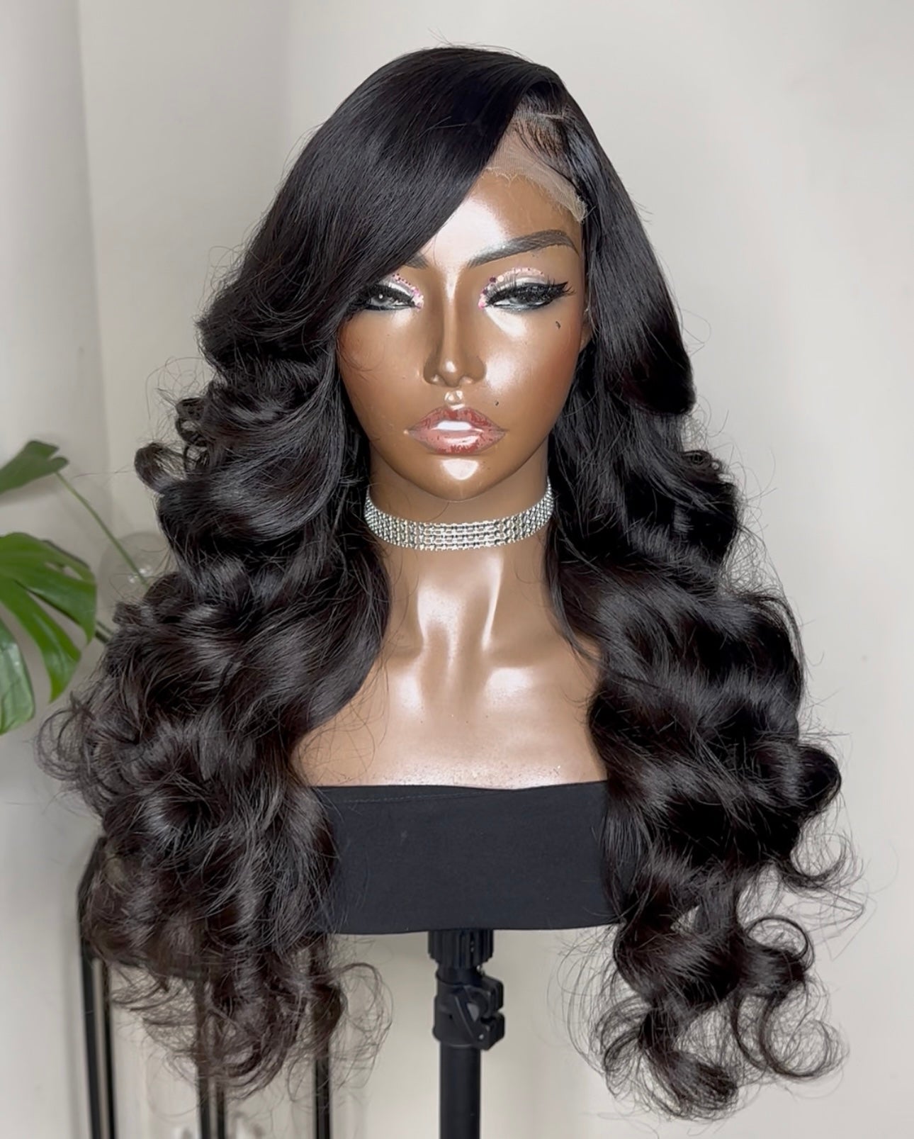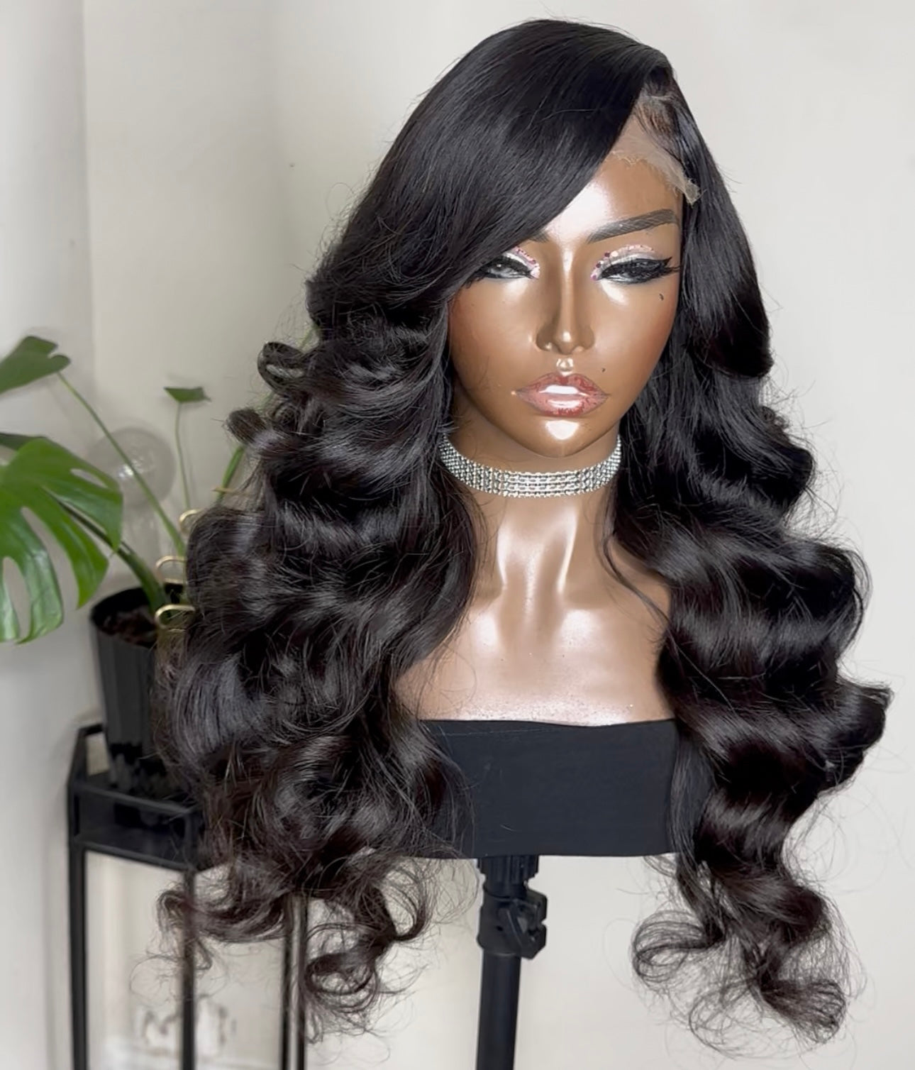 This custom wig features a 5x5 HD lace closure paired with three bundles of our top quality virgin body wave hair, offering a full, natural look with beautiful movement and body.